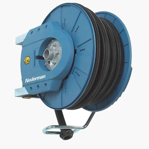 ATEX approved vacuum hose reel suitable for cleaning combustible dust.
